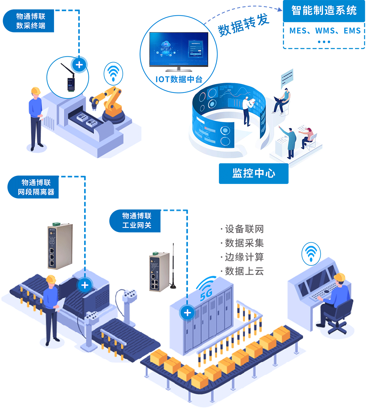 物通博联围绕工厂常见的产线物联及数采,设备运营管理、能耗分析管控、生产安全监控及环保监控等方面,通过物联网、大数据等先进技术的应用,为企业提供设备联网、数据采集、数据标准化、数据监控、数据应用等一站式智能工厂数字化解决方案,提供工厂的数字化和智能化水平,推动制造企业转型升级和可持续发展!