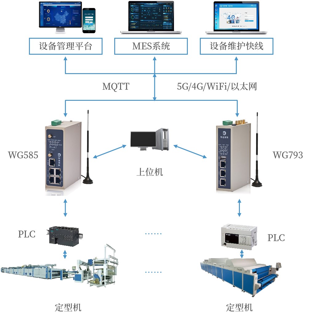 对于布局多厂区或异地代工厂的企业,管理人员无法实时获取各定型机的运行状态(如PLC控制信号、加热系统负载、风机转速)及故障代码(如超温报警、传动异常)。设备故障(如温度传感器失效导致的布面过热、进料辊卡顿引发的?;┩谂可蟛欧⑾郑唤鲈斐傻鼻芭蚊媪媳ǚ?,更因反复定型导致能耗激增,直接推高生产成本。